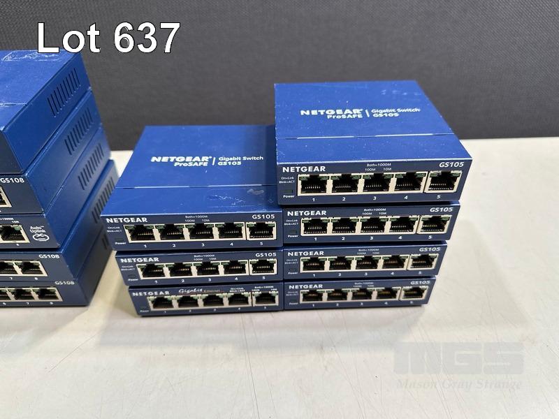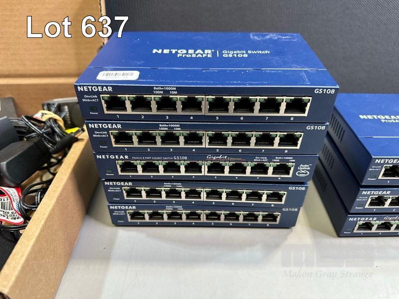 1 x NETGEAR PROSAFE GS108T 8-PORT GIGABIT SWITCH, 5 x NETGEAR PROSAFE GS108 8-PORT GIGABIT SWITCHES, 7 x NETGEAR PROSAFE GS105 5-PORT GIGABIT SWITCHES WITH POWER SUPPLIES