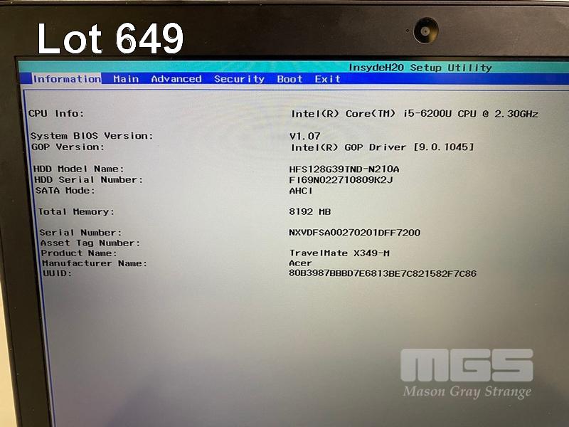 LAPTOP, ACER TRAVELMATE X349-M, CORE i5 6200U (6TH GEN) @ 2.3GHz, 8GB DDR4 RAM, 128GB M.2 SSD, 14" WIDESCREEN (1920x1080), INTEL HD VIDEO, Wi-Fi, BLUETOOTH, WINDOWS 10 HOME INSTALLED & POWER SUPPLY (NOTE: ENGRAVED BOTTOM OF CASING) S/N:70200767972