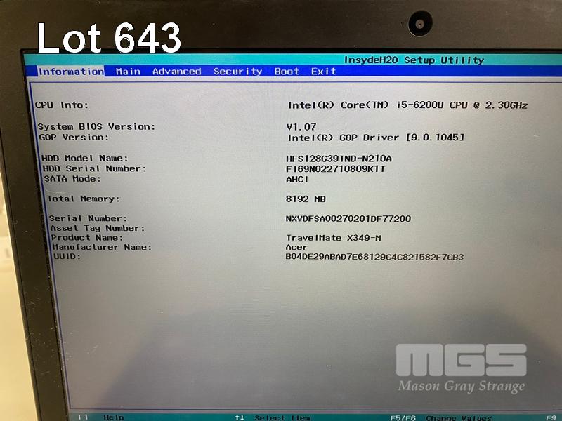 LAPTOP, ACER TRAVELMATE X349-M, CORE i5 6200U (6TH GEN) @ 2.3GHz, 8GB DDR4 RAM, 128GB M.2 SSD, 14" WIDESCREEN (1920x1080), INTEL HD VIDEO, Wi-Fi, BLUETOOTH, WINDOWS 10 HOME INSTALLED & POWER SUPPLY (NOTE: ENGRAVED BOTTOM OF CASING) S/N:70200767172