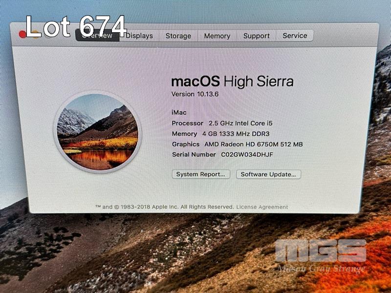 5 x APPLE iMACS INC. - CORE i5 2400S @ 2.5GHz, 4GB RAM, BUILT-IN 21.5" DISPLAY, KEYBOARD & MOUSE - CORE i5 2400S @ 2.5GHz, 4GB RAM, BUILT-IN 21.5" DISPLAY & KEYBOARD (NO MOUSE) S/N:C02GX6YXDHJF, C02GW034DHJF, C02GX72UDHJF, C02GW033DHJF, C02GW06VDHJF