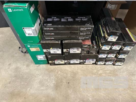 QTY ASST LEXMARK PRINTER TONER CARTRIDGES, IMAGING UNITS, WASTE TONER BOTTLES, MODELS INC. C925H2CG, C925H2MG, X925H2CG, X925H2MG, 52D0Z00 ETC