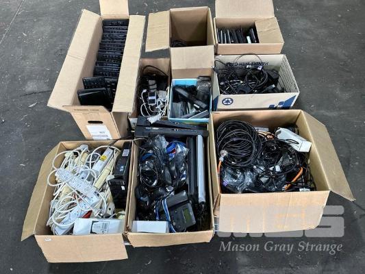 1 x PALLET LOT ASST POWER BOARDS, KEYBOARDS, CABLES, USB HUBS, LAPTOP BATTERIES, ETC