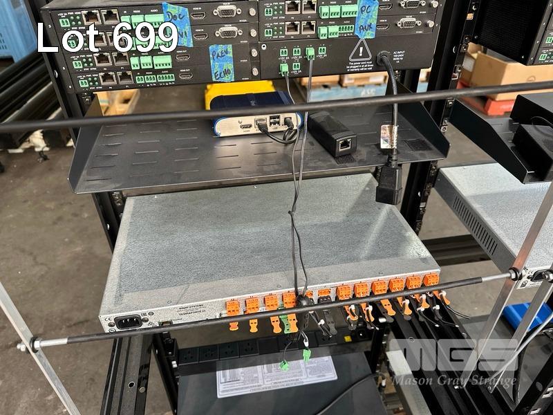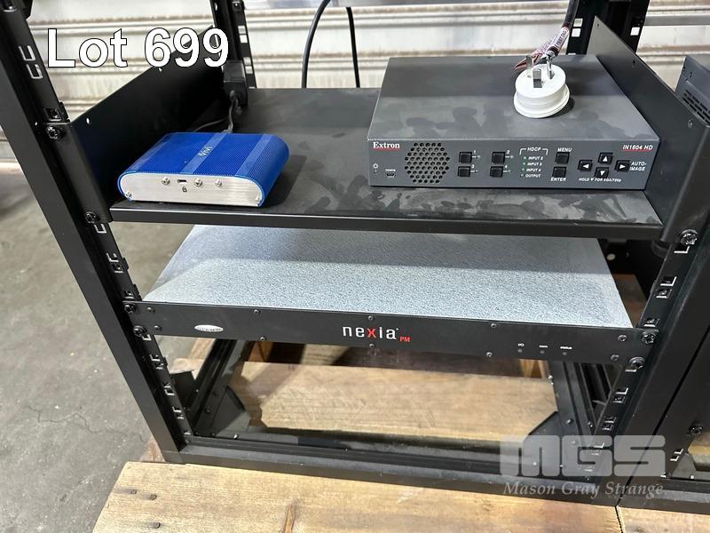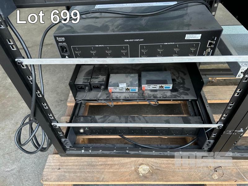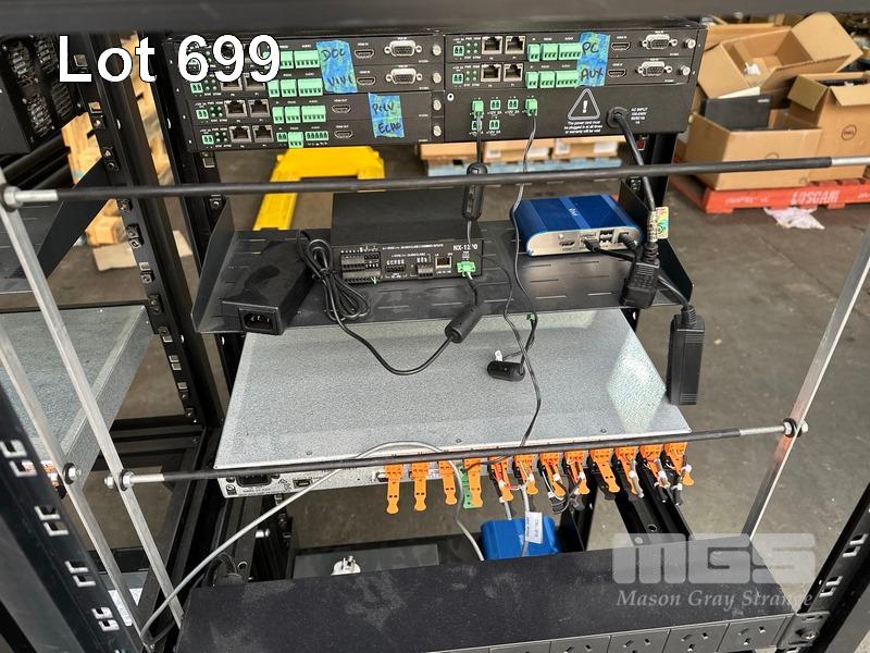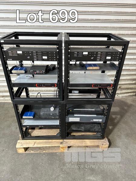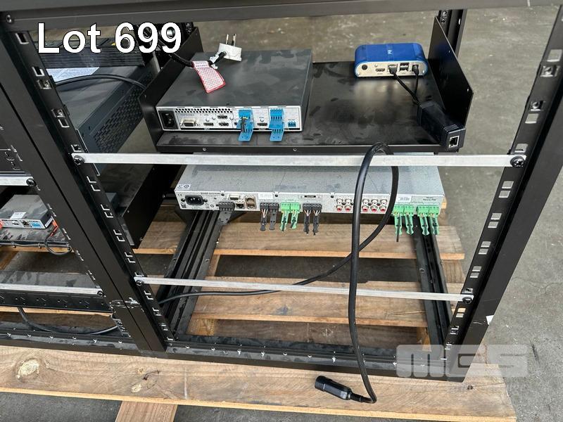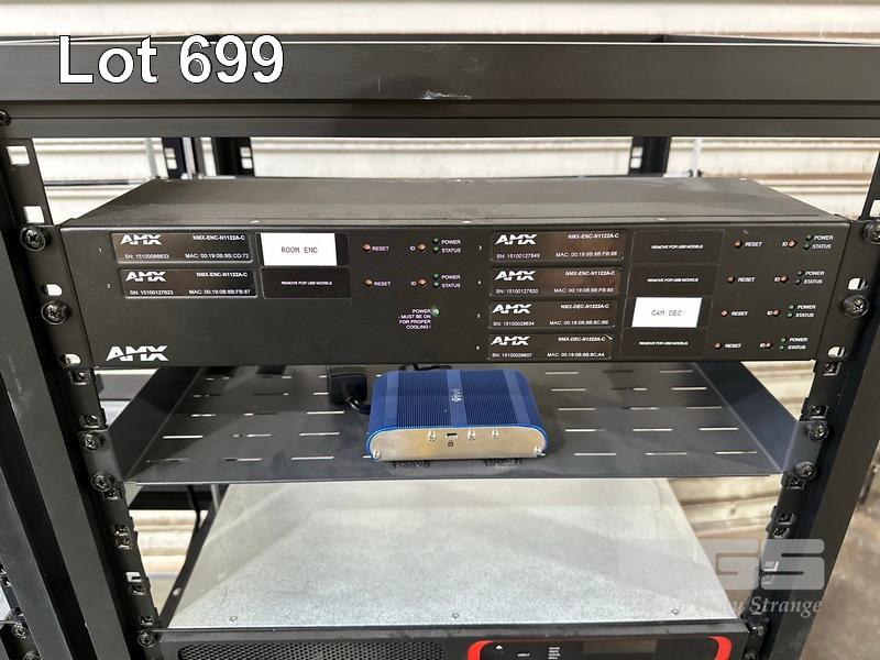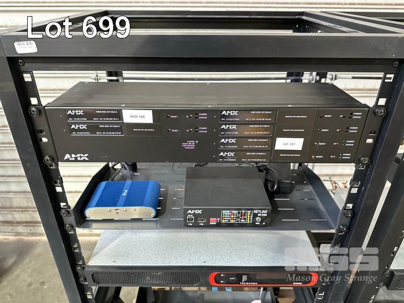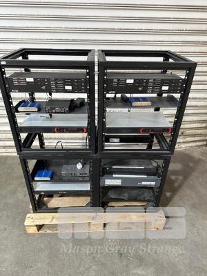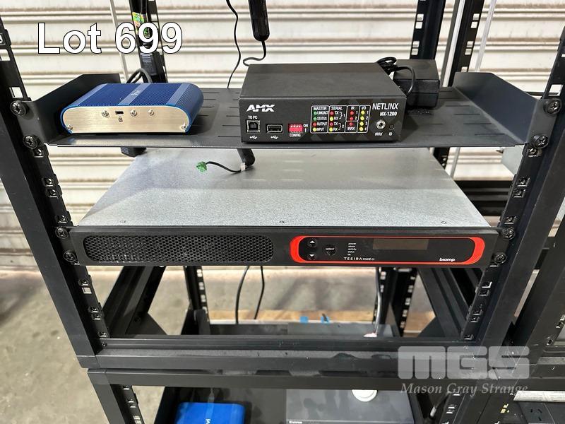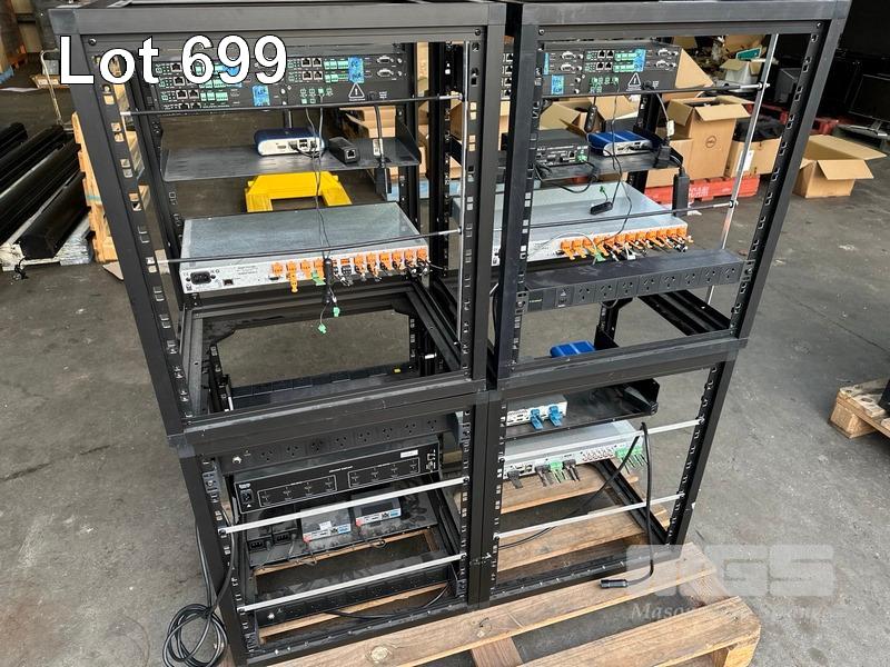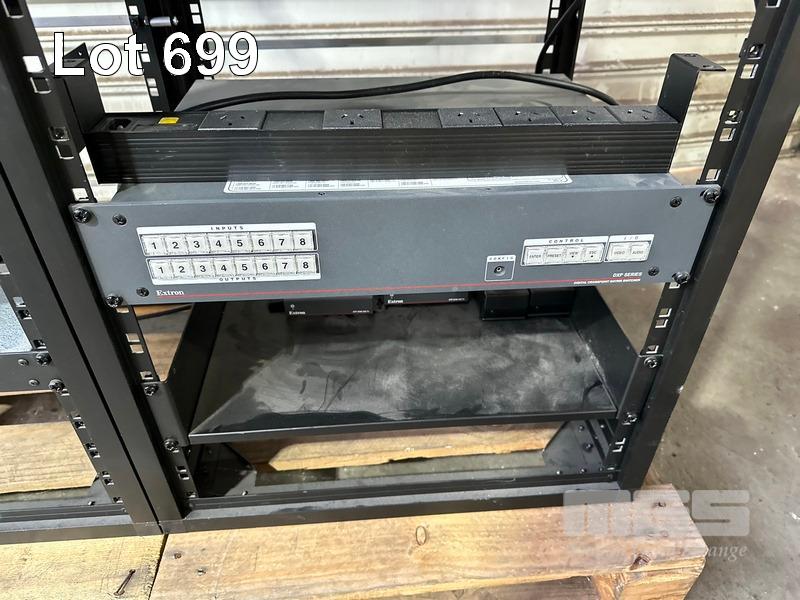 4 x DATA RACK FRAMES, 12RU & CONTENTS ASST AV EQUIPMENT INCLUDING AMX, EXTRON, BIAMP TESIRA FORTE CI, POWER BOARDS