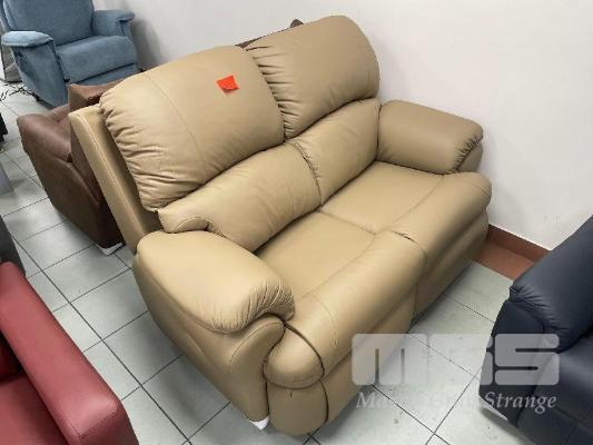 2 SEATER RECLINER, LIGHT BROWN LEATHER SHOW ROOM DISPLAY MODEL