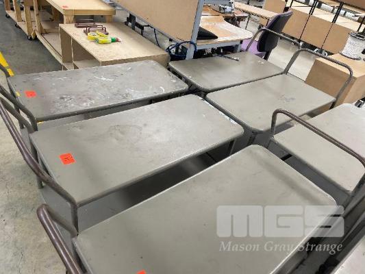 2 x STEEL STOCK TROLLEYS, 1100 x 500mm APPROX, 6 WHEEL, CENTRE PIVOT 2 TIER
