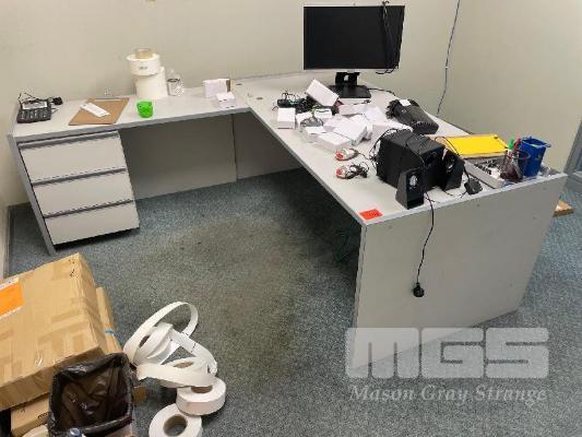 DESK & RETURN, STATIONERY, LAMINATOR, MONITOR, SPEAKERS, PROMOTIONAL COMPUTER MICE & MORE