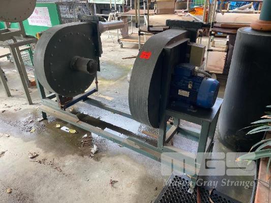 PAIR INDUSTRIAL BLOWERS MOUNTED ON STEEL FRAME WITH 2 x CMG ELECTRIC MOTORS, 3 PHASE