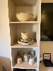 ROOM 1 (89) COMPRISING ALL REMOVABLE CHATTELS, INCLUDING KINGSIZE ENSEMBLE WITH HEADBOARD & LINEN 2 x BEDSIDE TABLE LAMPS WITH ROUND WHITE SHADE 2 x STAINLESS STEEL DRUM STYLE BEDSIDE TABLES, 50cm VIVO 46" LCD HD TELEVISION NESPRESSO COFFEE MACHINE, MODEL VERTUO POP GDV2 TUB STYLE ARM CHAIR, TIMBER FRAMED, BEIGE VINYL DINING TABLE, 100cm DIAMETER, TIMBER & 4 DINING CHAIRS PESKOE BAR FRIDGE STAINLESS STEEL MICROWAVE OVEN, SENSOR TOUCH CONTROLS IRON & COMPACT IRONING BOARD KETTLE, TOASTER, FRYPAN, CUTLERY, CROCKERY & GLASSWARE 3 x FRAMED PRINTS 2 x BINS YEALINK TELEPHONE HANDSET 4 x ALFRESCO CHAIRS, GREEN PVC 2 x TIMBER ALFRESCO SIDE TABLES, 50 x 50cm