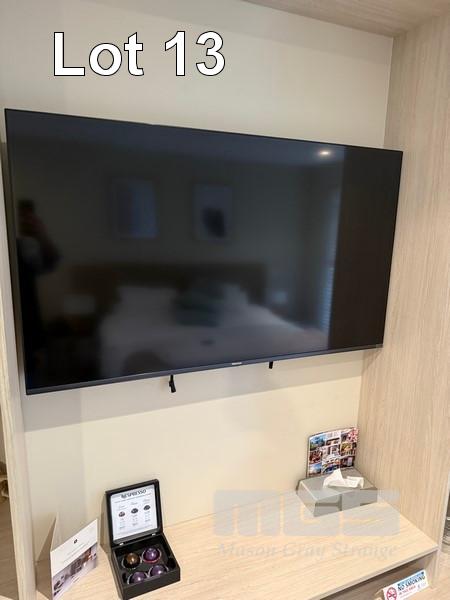 ROOM 13 (76) COMPRISING ALL REMOVABLE CHATTELS, INCLUDING KINGSIZE ENSEMBLE WITH HEADBOARD & LINEN 2 x BEDSIDE TABLE LAMPS WITH ROUND WHITE SHADE 2 x STAINLESS STEEL DRUM STYLE BEDSIDE TABLES, 50cm HISENSE 46" LED TELEVISION NESPRESSO COFFEE MACHINE, MODEL VERTUO POP GDV2 TUB STYLE ARM CHAIR, TIMBER FRAMED, BEIGE VINYL DINING TABLE, 100cm DIAMETER, TIMBER & 4 DINING CHAIRS KOGAN MINI BAR FRIDGE STAINLESS STEEL MICROWAVE OVEN, SENSOR TOUCH CONTROLS IRON & COMPACT IRONING BOARD KETTLE, TOASTER, FRYPAN, CUTLERY, CROCKERY & GLASSWARE 3 x FRAMED PRINTS 2 x BINS YEALINK TELEPHONE HANDSET 2 x ALFRESCO CHAIRS, GREEN PVC 1 x TIMBER ALFRESCO SIDE TABLE, 50 x 50cm 1 x CIRCULAR RUG, RED