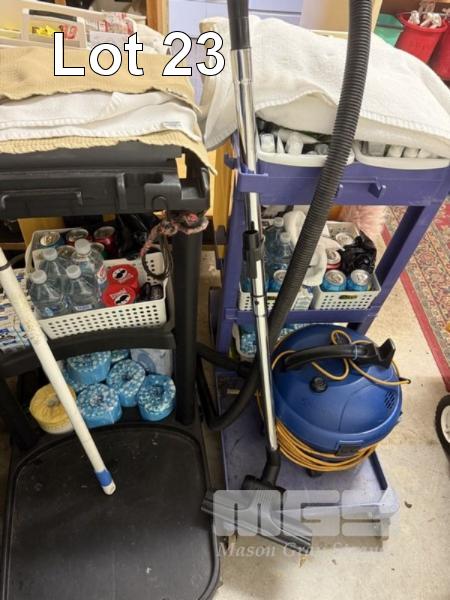 2 x CLEANERS TROLLEYS, 3 TIER WITH ROOM SUPPLIES