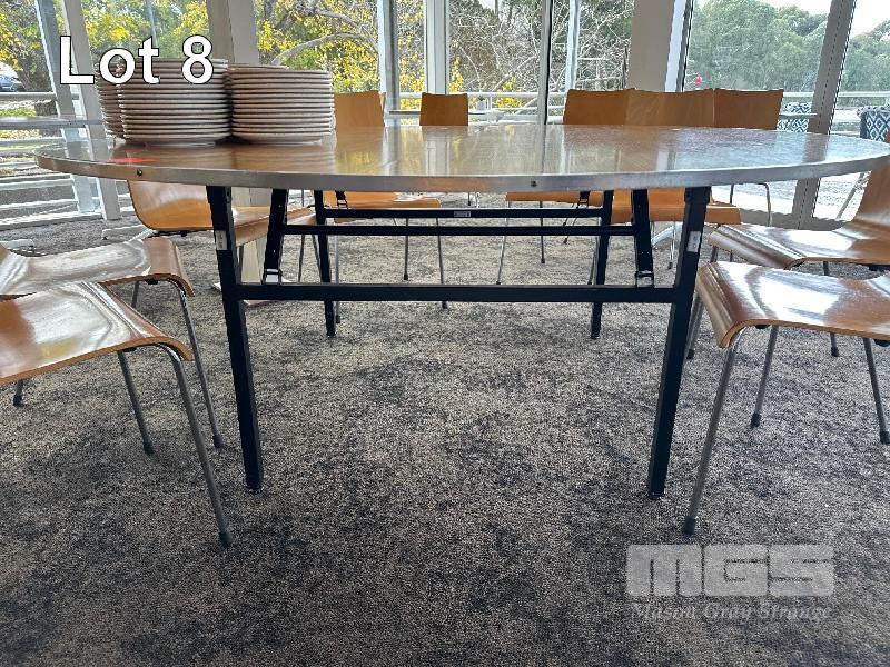 2 x ROUND CAFE TABLES, 1800 & 1530mm, TIMBER LAMINATE, FOLDING