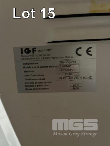 PIZZA DOUGH ROLLER, IGF MOD: 2300/B40P DOM: 2015 240V, PEDAL CONTROL