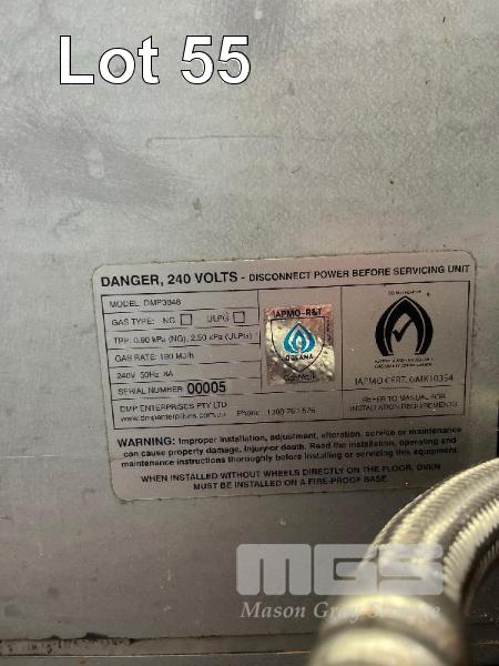 CONVEYOR PIZZA OVEN, DMP, POCKET ROCKET, MOD: DMP3848 S/NO: 00005, DRO, ON CASTORS 240V, NAT GAS AUSTRALIAN MADE!