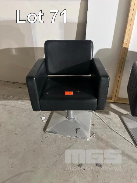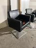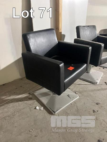 5 x BARBERS CHAIRS, BLACK VINYL, CHROME BASE, GAS LIFT