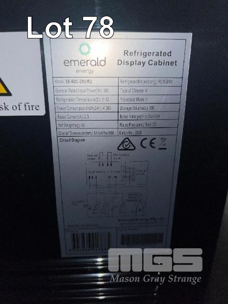 UPRIGHT DISPLAY FRIDGE, EMERALD MOD: EE-RDC-290 CAPACITY: 290 LITRE 4 WAY GLASS ILLUMINATED, DRO 240V 10AMP