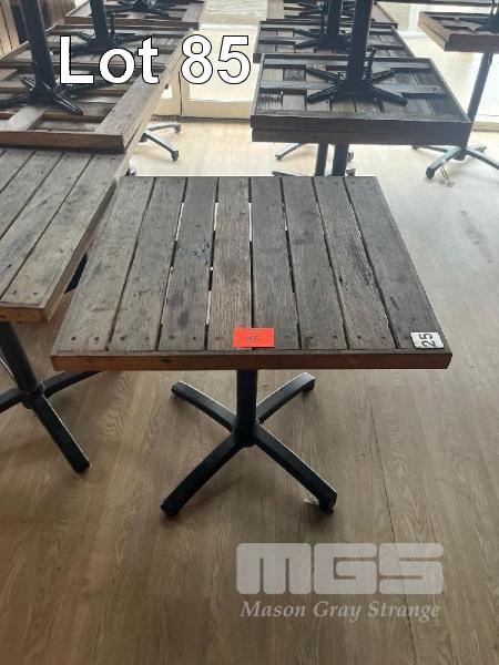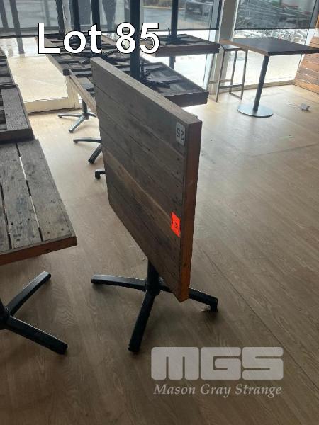 8 x TILTING TOP CAFE TABLES, TIMBER TOP, BLACK PEDESTAL BASE, 700 x 700mm