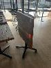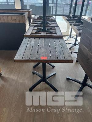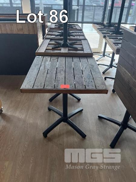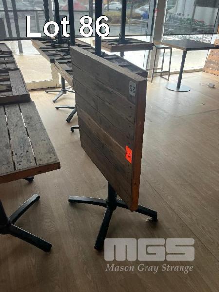 8 x TILTING TOP CAFE TABLES, TIMBER TOP, BLACK PEDESTAL BASE, 700 x 700mm