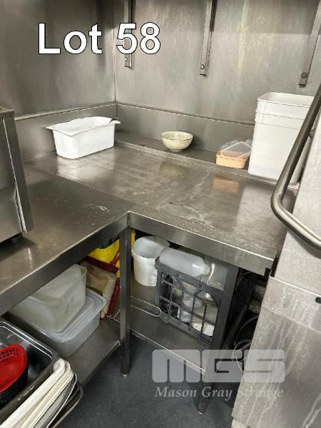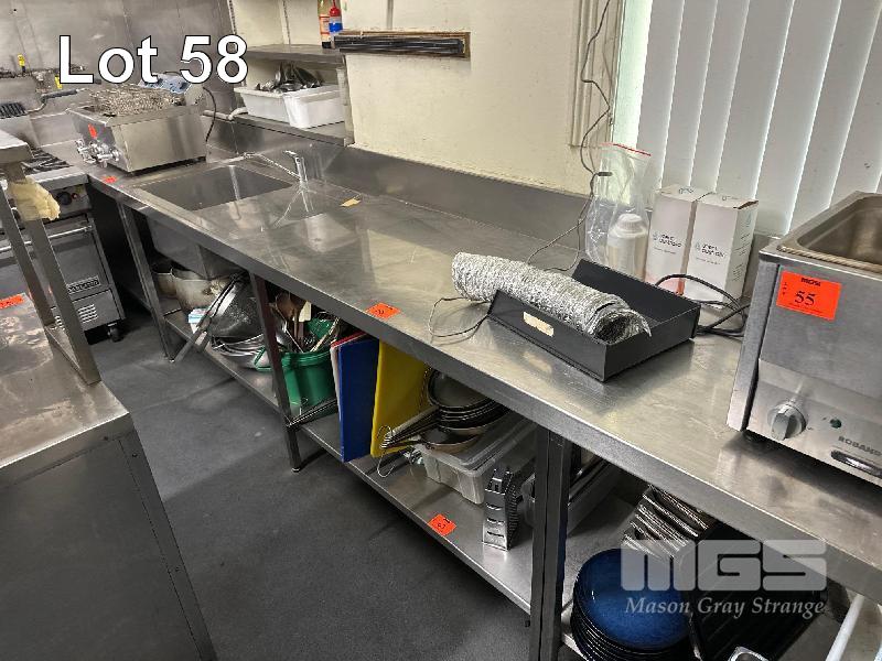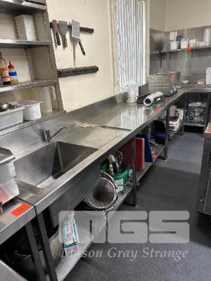 LARGE STAINLESS STEEL DISHWASHER INFEED CORNER BENCH, WITH DEEP BOWL SINK, 4240 x 640 x 920mm (H)