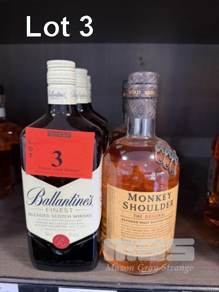 SCOTCH WHISKY: 3 x BALLANTINES FINEST, 700ml & 2 x CMONKEY SHOULDER, BATCH 27, 700ml