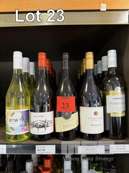 CHARDONNAY: 6 x DE BORTOLI, SACRED HILL, 2019, 5 x CASE FELIX, MARGARET RIVER, 2019, 5 x PEPPERJACK, ADEL HILLS-PADTHAWAY, 2019, 6 x THE LANE, 2020 & 3 x BTW, 2018