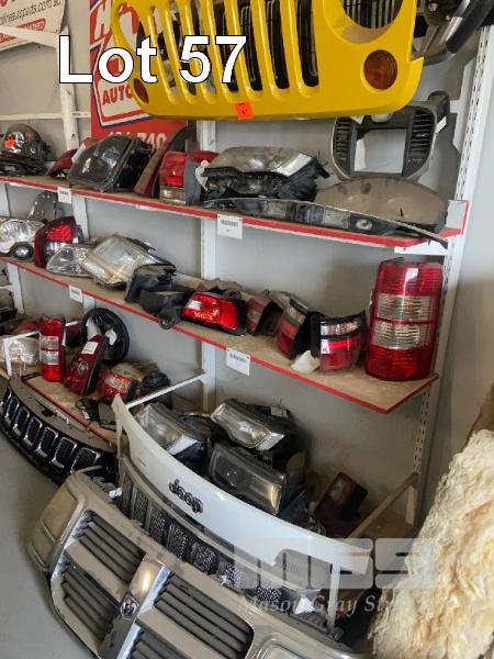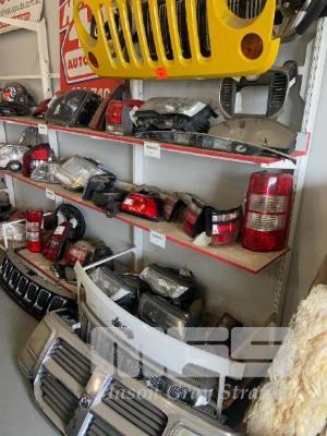 JEEP PARTS, GRILLS, HEAD & TAIL LIGHTS, STEERING WHEELS, ETC 2 x BAYS