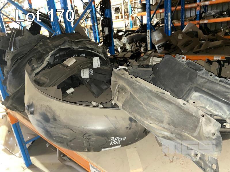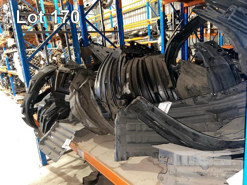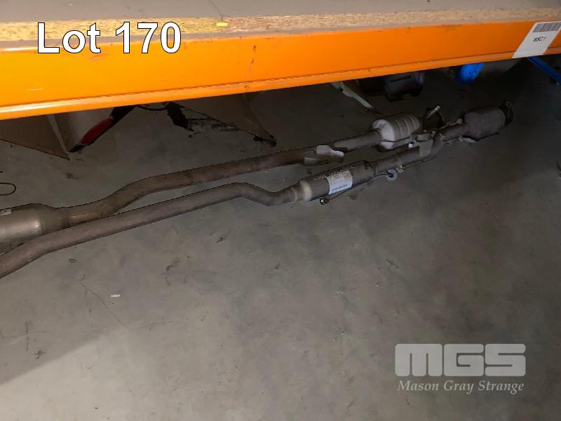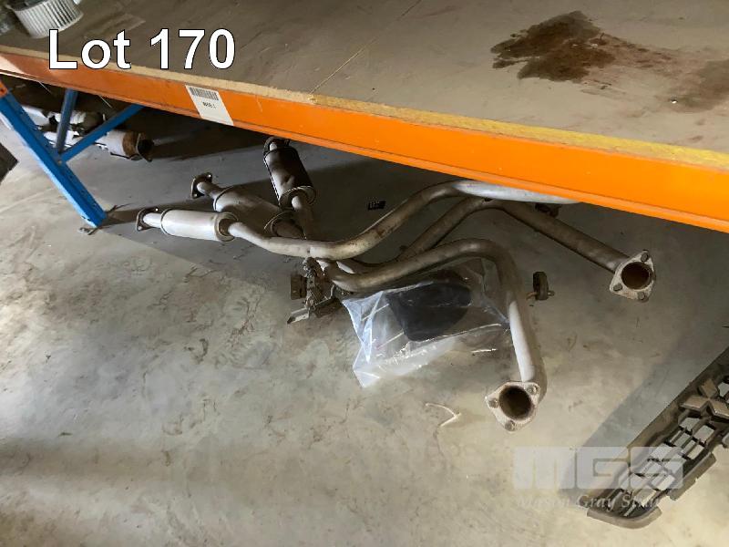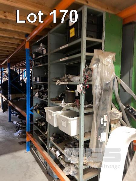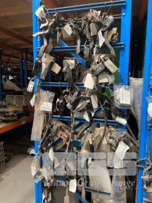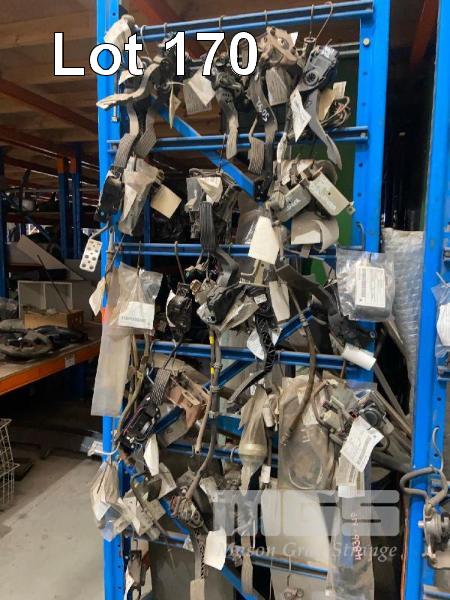 ROW OF RACKING PARTS INCLUDING INHIBITOR SWITCHES, ASSEMBLIES, PIPING, THROTTLE BODIES, POWER STEERING PARTS, INNER GUARDS, EXHAUST SYSTEM & CAST MANIFOLD 4 BAYS OF RACKING