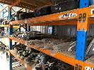 ROW OF RACKING PARTS INCLUDING HEADLIGHTS, GAUGE CLUSTERS, WASHER BOTTLES, TRIM , FUEL TANKS 4 BAYS OF RACKING