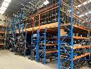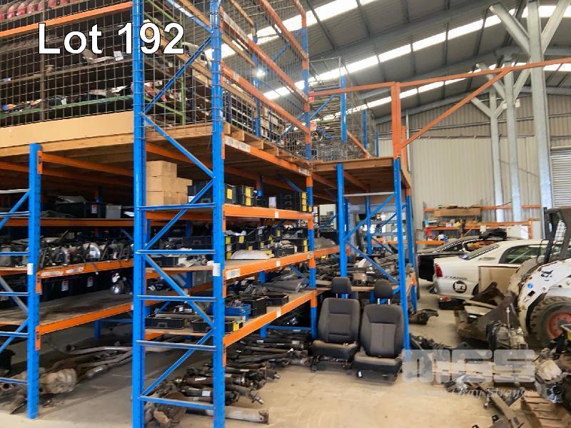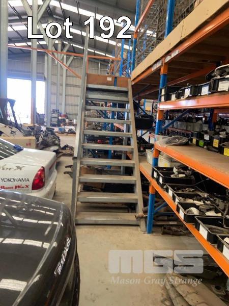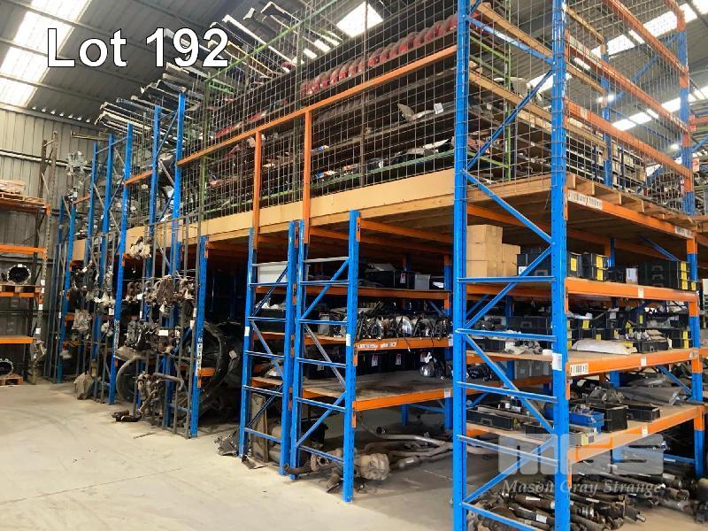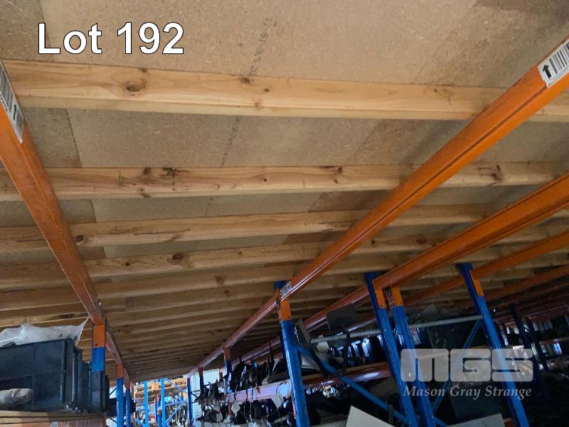 DEXION MEZZANINE FLOOR STRUCTURE 12 X 12m AREA APPROX 8 x 4 BAYS DEXION PALLET RACKING 2.5m MEZZANINE HEIGHT 6m UPRIGHTS OUTER & CENTRE MEZZANINE RACKING STRUCTAFLOOR BASE WITH 90 x 40mm BEAMS HANDRAIL EDGE & FORKLIFT DOCK AREA & STEEL ACCESS STEPS