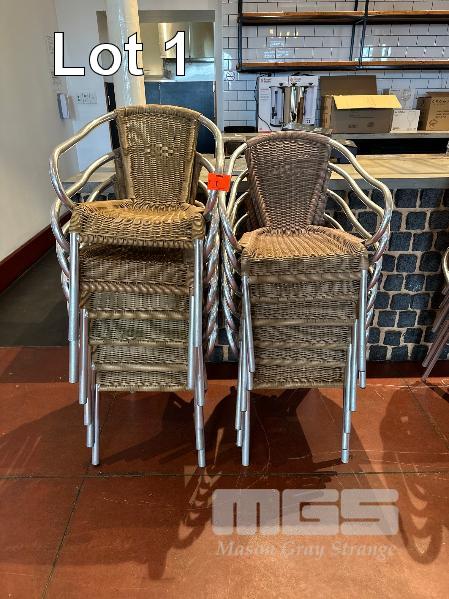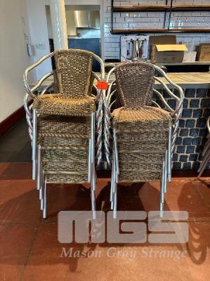 12 x WICKER CAFE CHAIRS, ALLOY FRAME, STACKABLE