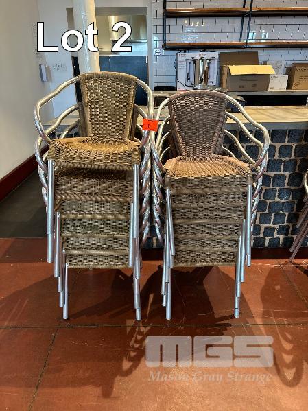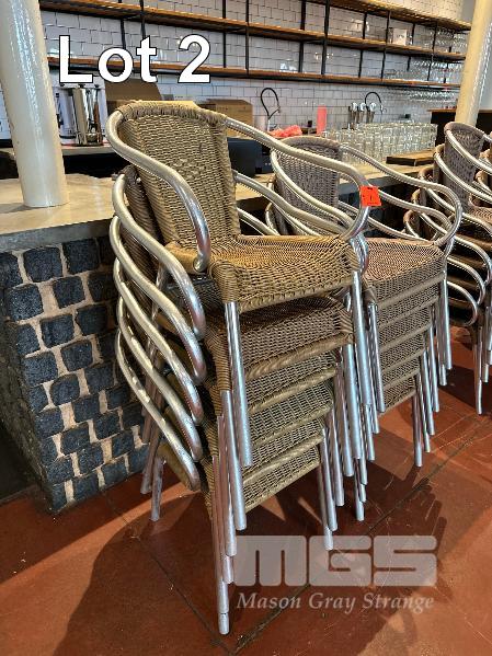 12 x WICKER CAFE CHAIRS, ALLOY FRAME, STACKABLE