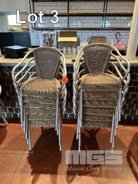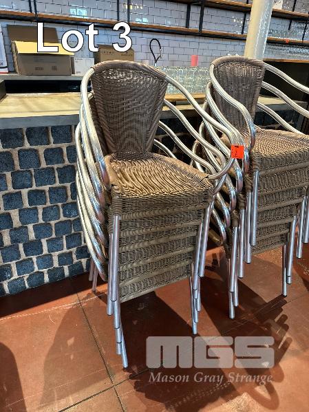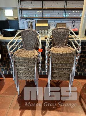 12 x WICKER CAFE CHAIRS, ALLOY FRAME, STACKABLE
