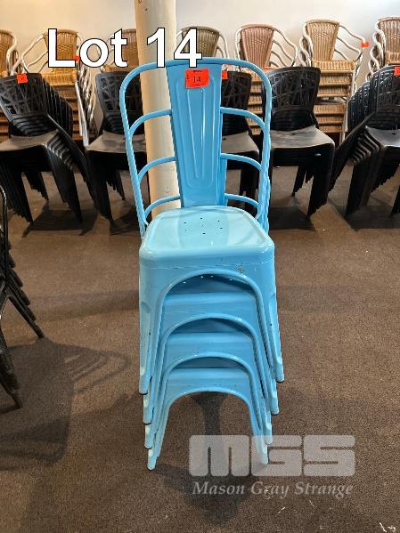 4 x LIGHT BLUE STEEL CHAIRS, STACKABLE