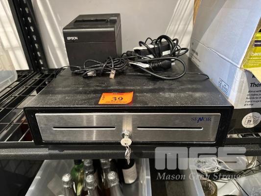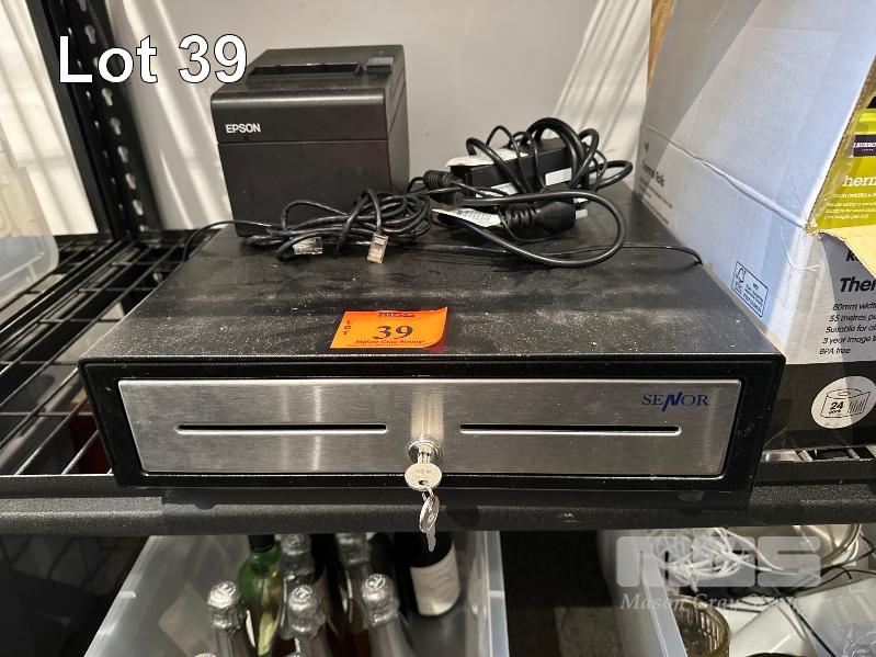 CASH DRAWER WITH KEY, EPSON DOCKET PRINTER + SPARE THERMAL PAPER