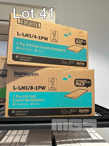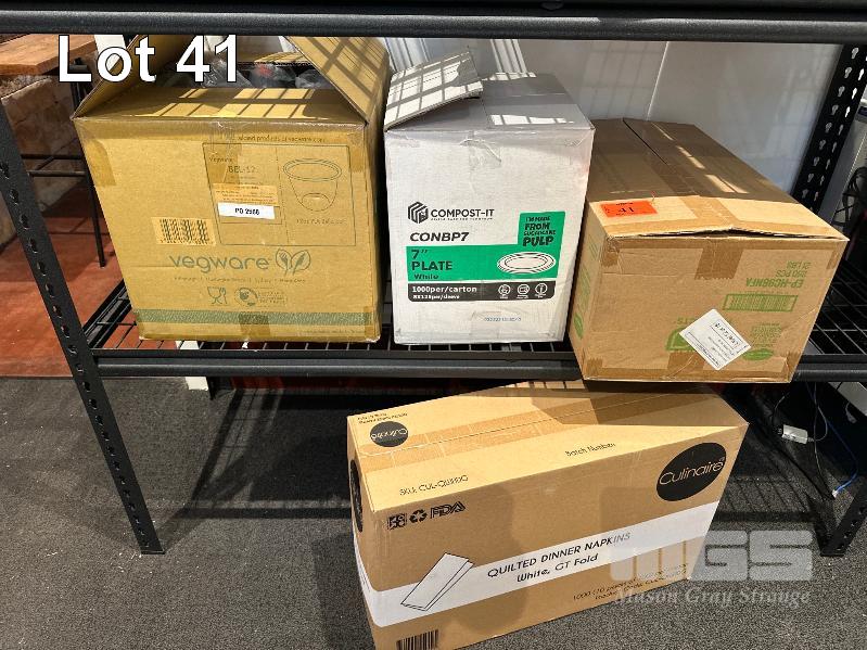 LARGE QTY NAPKINS, DISPOSEABLE PLATES, BOWLS, GARBAGE BAGS, SUGAR PACKETS ETC.