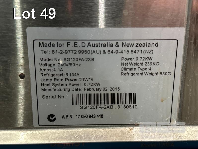 FED REFRIGERATED DISPLAY, MOD: SG120FA-2XB, DOM: 2015, 1170 x 670 x 1240mm, 240V 10amp