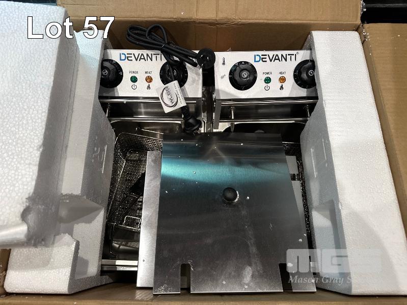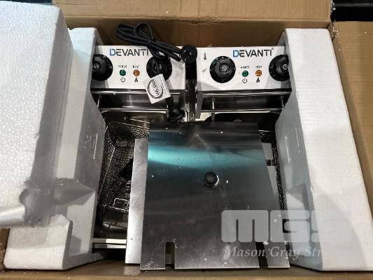 DEVANTI TWIN BASKET COUNTER TOP FRYER, MOD: CDF-DC4, 240V 10amp, AS NEW IN BOX!