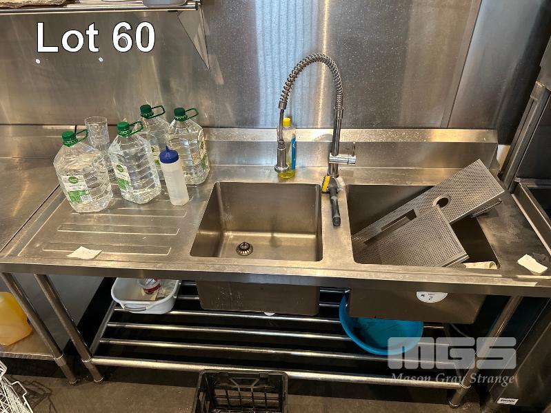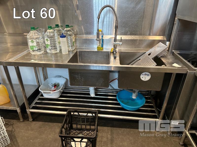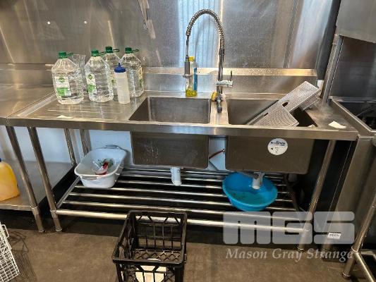 STAINLESS STEEL TWIN BOWL SINK WITH SRING TAP, 1800 x 700mm (SUIT PASS THRU INFEED)