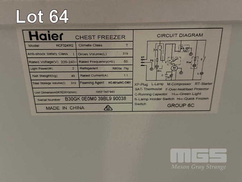 HAIER CHEST FREEZER, MOD: HCF324W2, 319L CAP, 240V 10amp