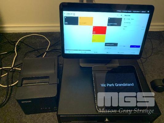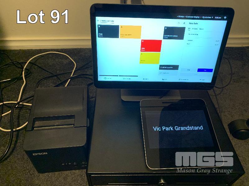 SQUARE POS SYSTEM, MOD: SPS4-01-A, TOUCH SCREEN, CARD READER, EPSON DOCKET PRINTER & CASH DRAWER