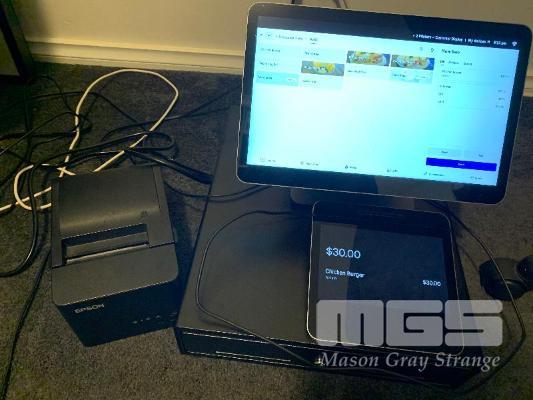 SQUARE POS SYSTEM, MOD: SPS4-01-A, TOUCH SCREEN, CARD READER, EPSON DOCKET PRINTER & CASH DRAWER