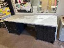 DESK WORK STATION & STORAGE, 2 x L-SHAPED CABINETS & DESK, MARBLE LOOK LAMINATE TOP, 4 x 2 x 2m & CHAIRS