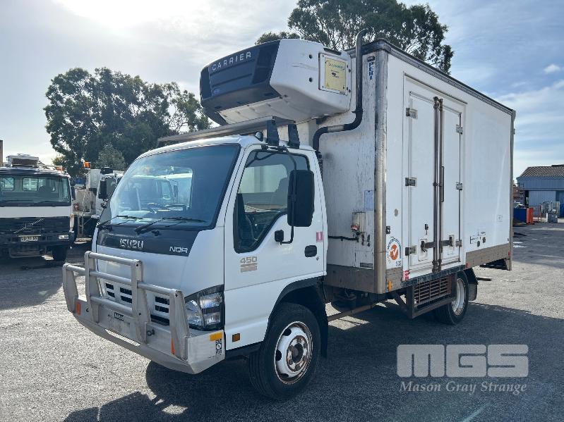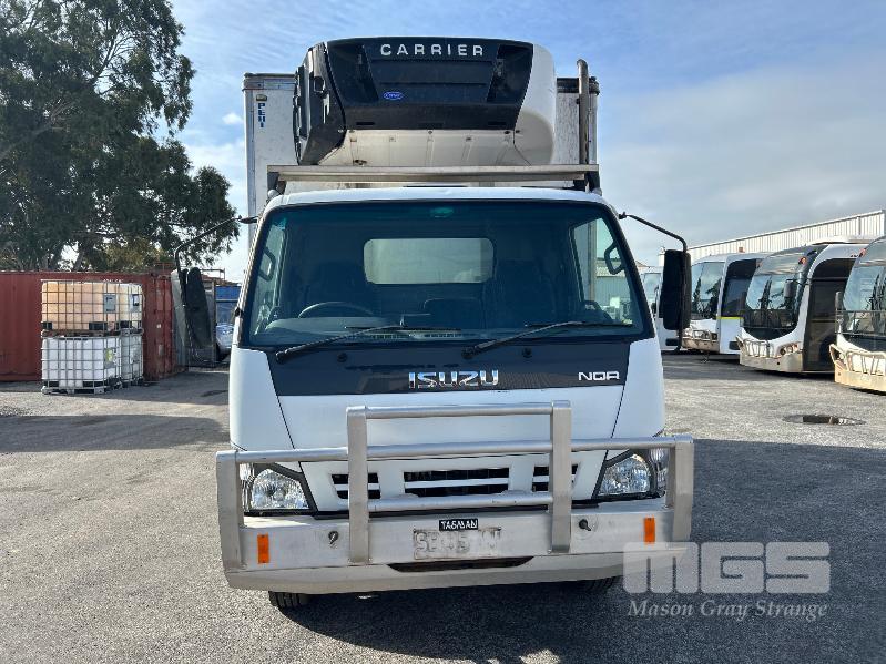 2007 ISUZU NQR N5 4x2 SINGLE CAB REFRIGERATED PANTEC REG: NO PLATES VIN: JAAN1R75L67101185 ENG: 4HK1574167 ODO: 242,165kms SHOWING GVM: 8,700kg GCM: 12,200kg ISUZU SITEC 175, 5.2 LITRE TURBO DIESEL, 6 SPEED MANUAL TRANSMISSION, SPRING SUSPENSION, WHITE DUCO, 2 DOORS, 3 SEAT, AIR CON, CD PLAYER, BULL BAR, STEEL RIMS, PEKI REFRIGERATED PANTEC BODY SIZE: 4300 x 2500 x 2450mm (H) FITTED WITH MOVABLE INTERNAL WALL, 2 x SIDE & 3 x REAR DOORS CARRIER EASYCOLD, REFRIGERATION FREEZER UNIT POWERED BY DIESEL ENGINE WITH CARRIER TRANSICOLD DIGITAL IN CAB CONTROLLER SPARE WHEEL KEY #39 (WITH 1 KEY/S)