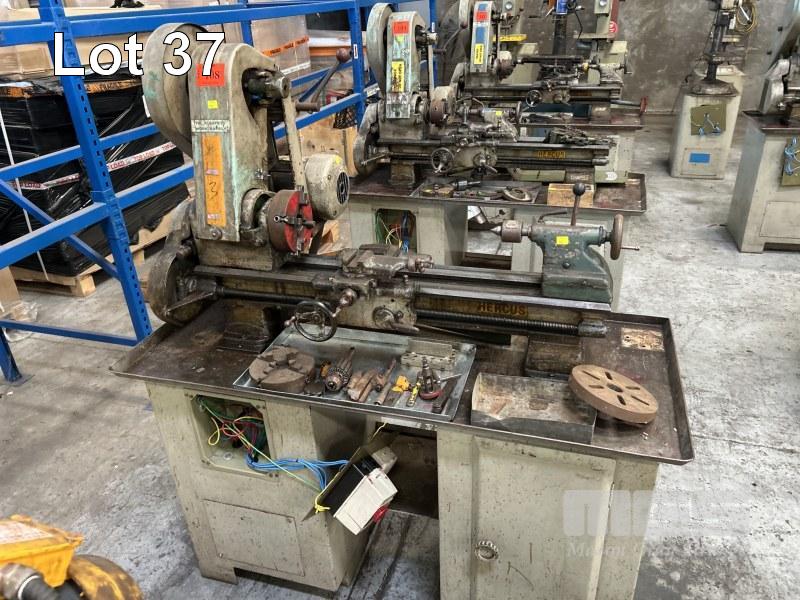 METAL WORKING LATHE, HERCUS MOD: CR BED LENGTH: 750mm BETWEEN CENTRES: 550mm SWING: 240mm FEED THROUGH: 20mm WITH 2 x 4 JAW CHUCKS, 150mm LIVE CENTRE, CHUCK & TOOL HOLDERS 415V