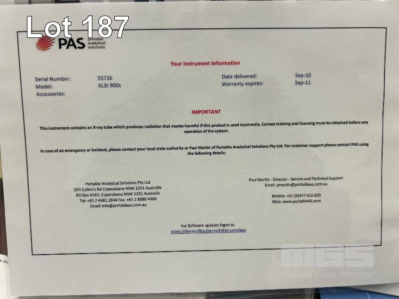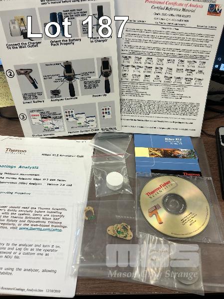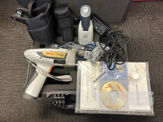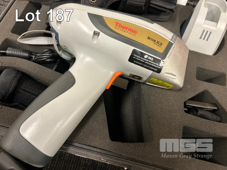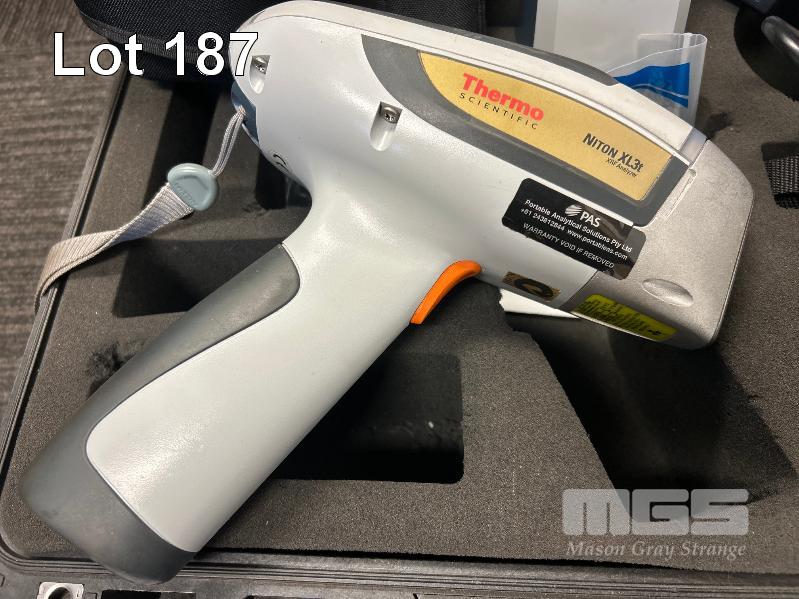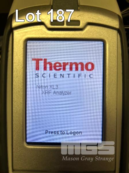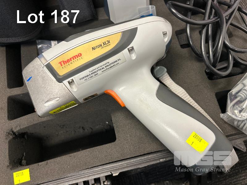 XRF ANALYSER, THERMO SCIENTIFIC, NITON MOD: XL3T9005 HAND HELD ANALYSER DOM: 2010 SUITED TO POSITIVE MATERIAL IDENTIFICATION MAINLY WITH STAINLESS STEEL & NICKEL ALLOYS 8 & 3mm FOCAL SPOTS, WITH MANUAL & SOFTWARE 2 x BATTERIES & CHARGER, CALIBRATION TEST ALLOY SAMPLE, INSTRUMENT & BATTERY HOLSTERS & PROTECTIVE ARMORED CARRY CASE PASSWORD PROTECTED P/N NO: 4321
