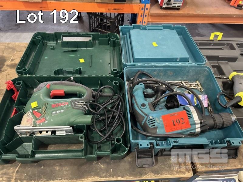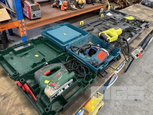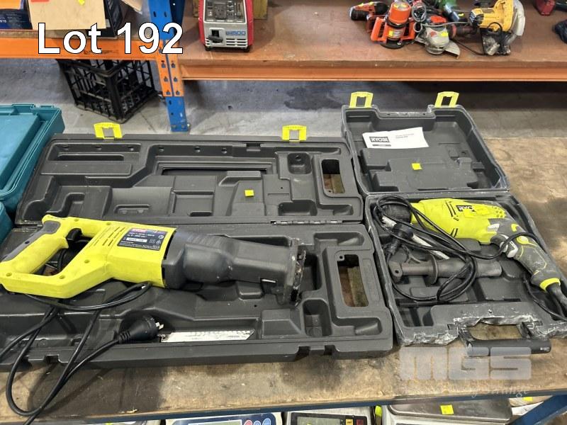 RYOBI HAMMER DRILL & RECIPROCATING SAW, BOSCH JIGSAW & MAKITA HAMMER DRILL, 240V