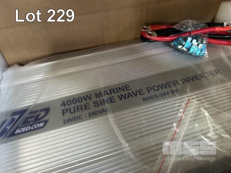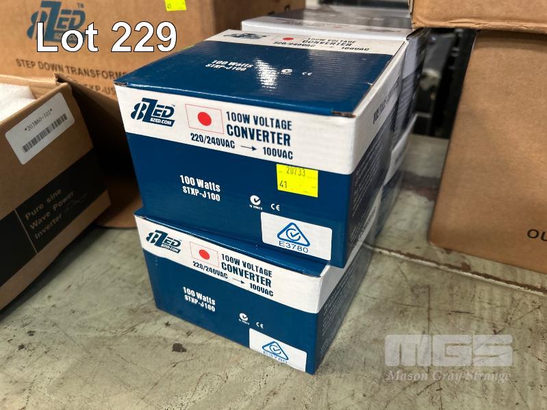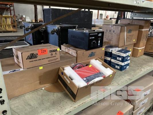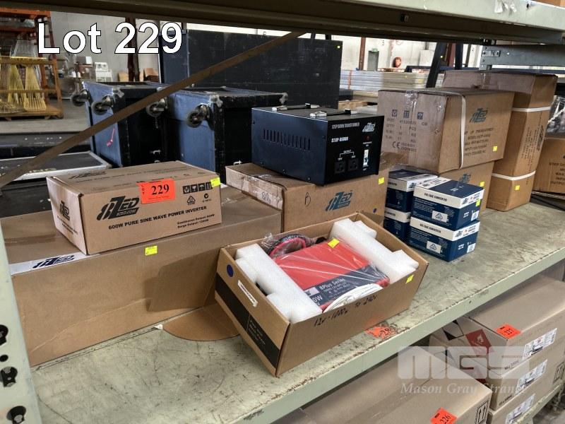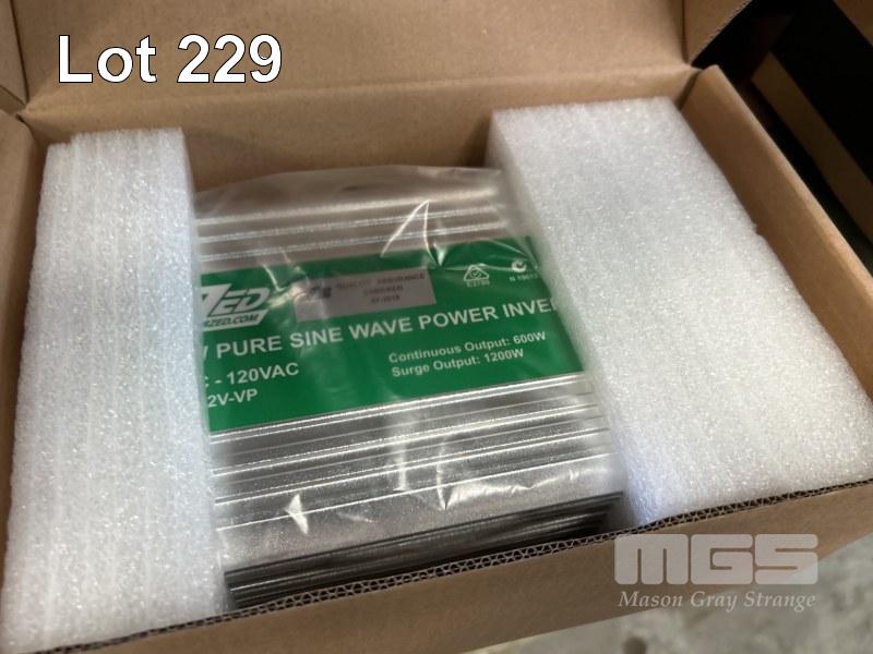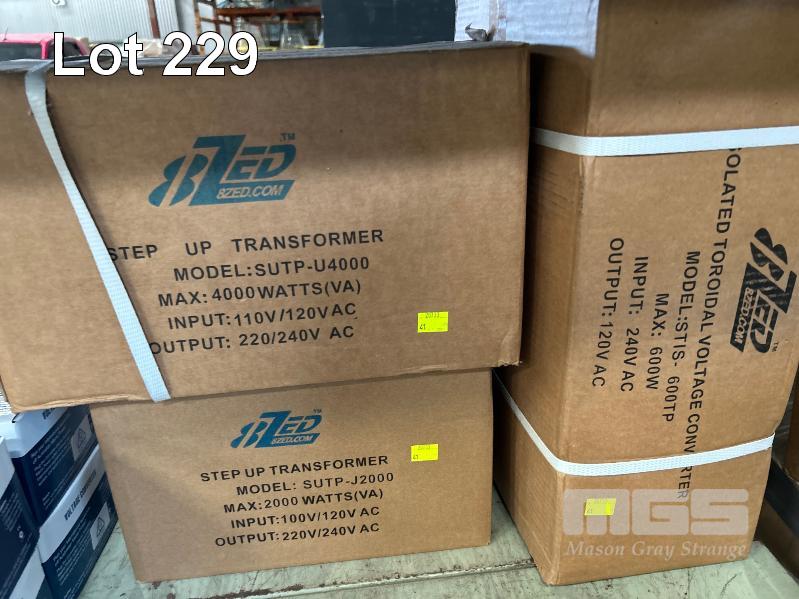 3 x POWER INVERTERS, 8 ZED, PURE SINE WAVE 4000w- 24V DC TO 240VAC, 1000w -12V DC TO 240VAC, 600w - 12V DC TO 120VAC, 3 x POWER TRANSFORMERS INCLUDING 5000w - 240V TO 120VAC, STEP DOWN 4000w - 120V TO 240VAC, STEP UP, 2000w - 120V TO 240VAC, STEP UP, 2 x 600w - 240V TO 120VAC, STEP DOWN, 4 x 100w - 240V TO 120VAC, STEP DOWN