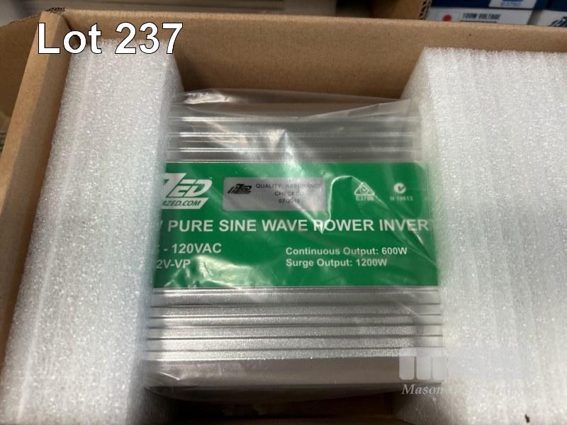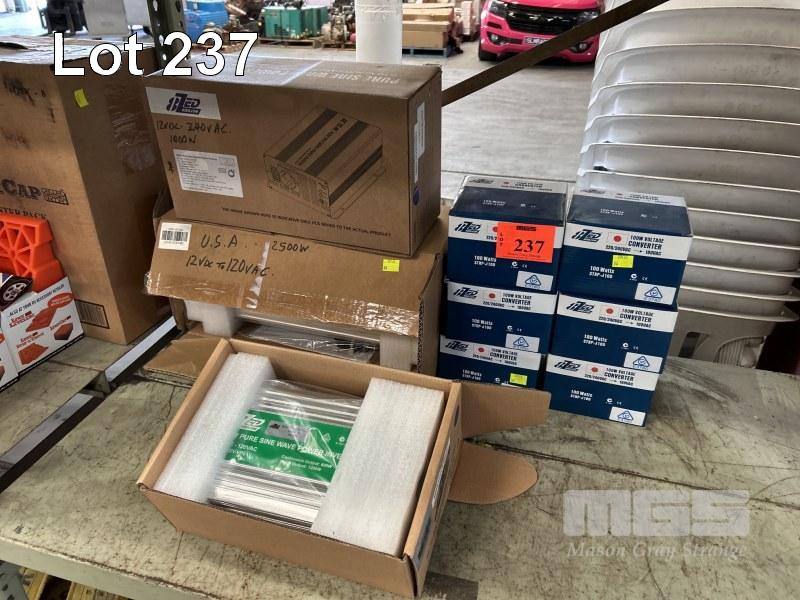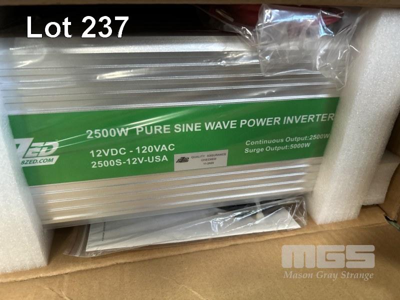 3 x POWER INVERTERS, 8 ZED, PURE SINE WAVE INCLUDING 2500w - 12V DC TO 120VAC 1000w -12V DC TO 240VAC 600w - 12V DC TO 120VAC & 6 x STEP DOWN POWER CONVERTERS, 240V TO 100VAC, 1000w AS NEW