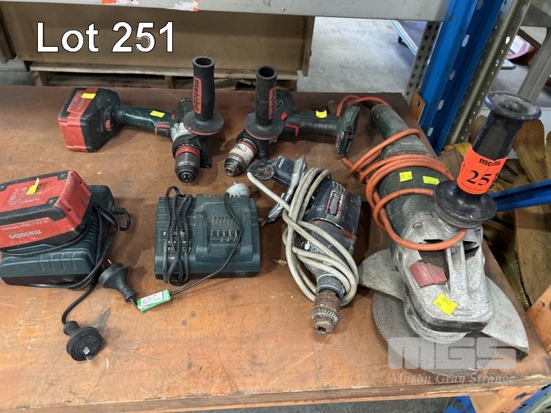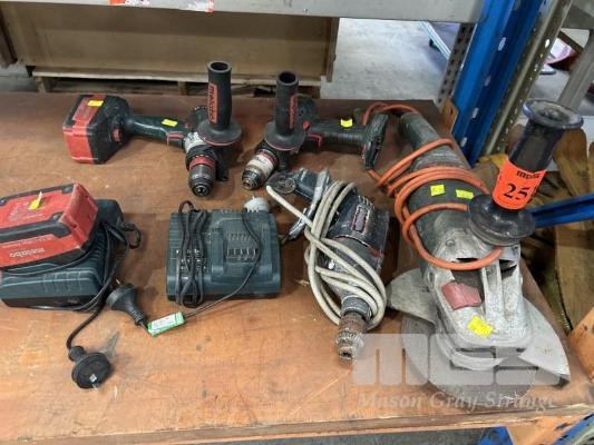 2 x BATTERIES & CHARGERS, 9" GRINDER & DRILL