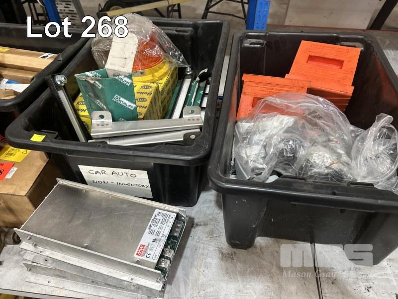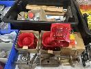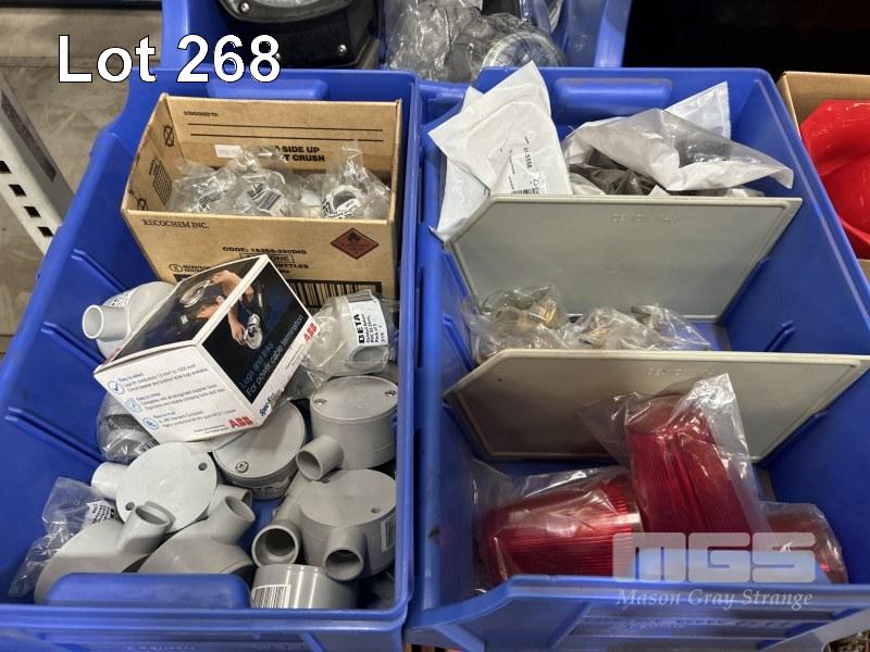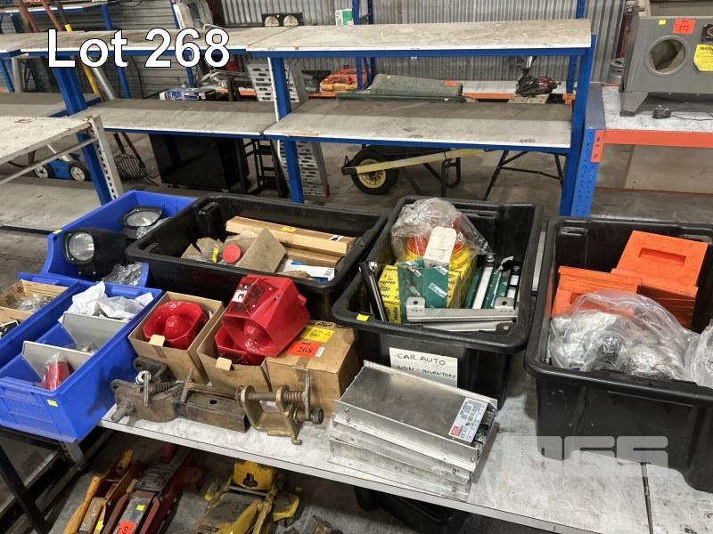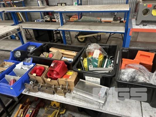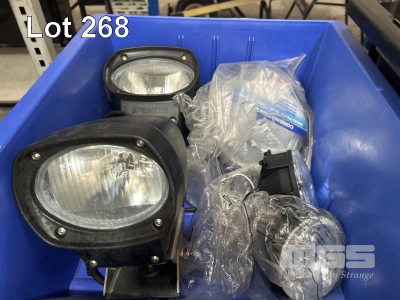 2 x SPOT LIGHTS, SPEAKER, 24V, 4 x HAZARD LIGHTS WITH SIRENS, BATTERY CLAMPS, ELEC FITTINGS, FLURO TUBES, SIGHT LEVEL GAUGES, HAZARD BEACON LIGHTS, ETC, AS NEW