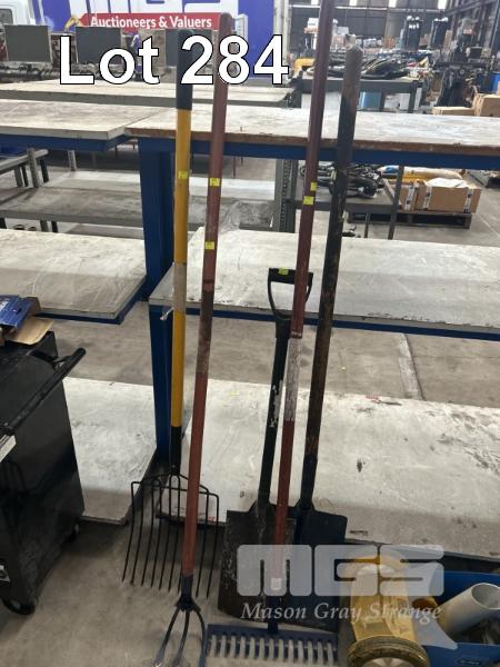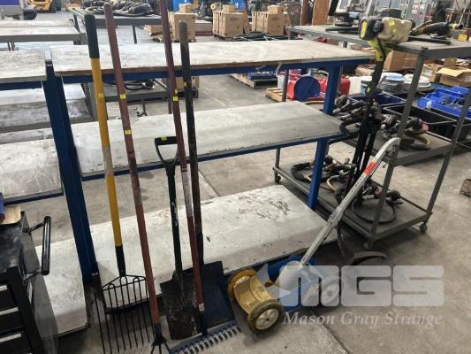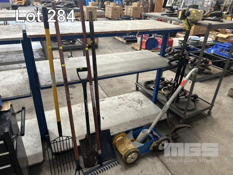 RYOBI LINE TRIMMER, SHOVEL, RAKE, LINE MARKER, ETC